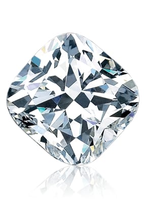 The Cushion Cut diamond is an elegantly shaped diamond that has recently gained popularity because of the heightened demand for vintage-styled jewelry. Combining the cut characteristics of both the round and the oval, the Cushion Cut diamond’s rounded corners and larger facets increase this special diamond’s brilliance.