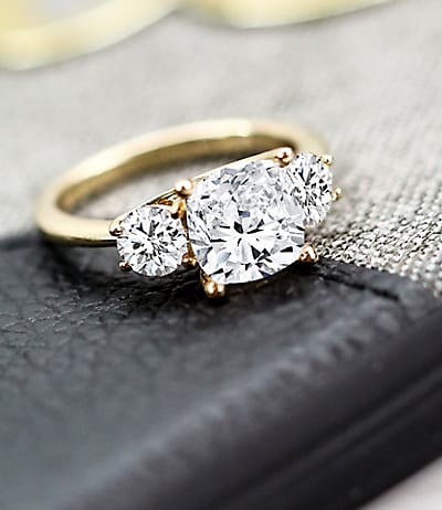 Elegant and understated—a classic three-stone setting is an heirloom in the making.
