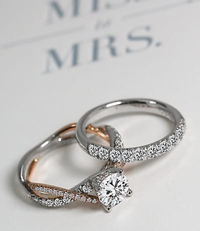 Seamless designs, from basic to bling, effortlessly combine engagement and bridal.