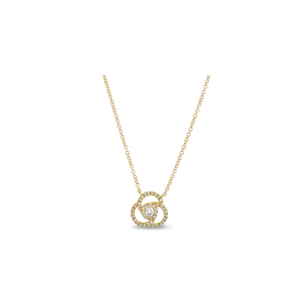 Shy Creation 14k Yellow Gold Flower Necklace .04 ct. tw.