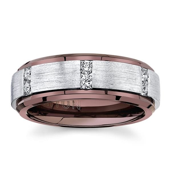 Triton Espresso Tungsten Carbide and Sterling Silver 8 mm Diamond Wedding Band 1/3 ct. tw.