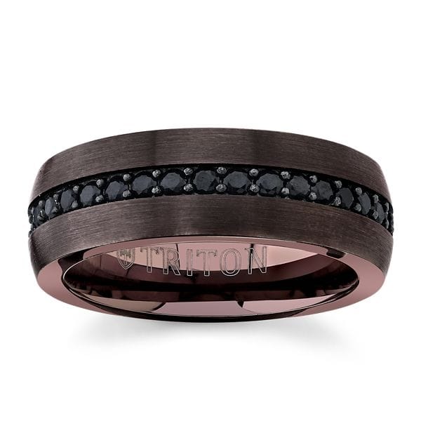 Triton Espresso Tungsten Carbide and Sterling Silver 8 mm Black Sapphires Wedding Band