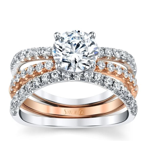 Simon G. 18k White Gold and 18k Rose Gold Diamond Wedding Set Setting 5/8 ct. tw.
